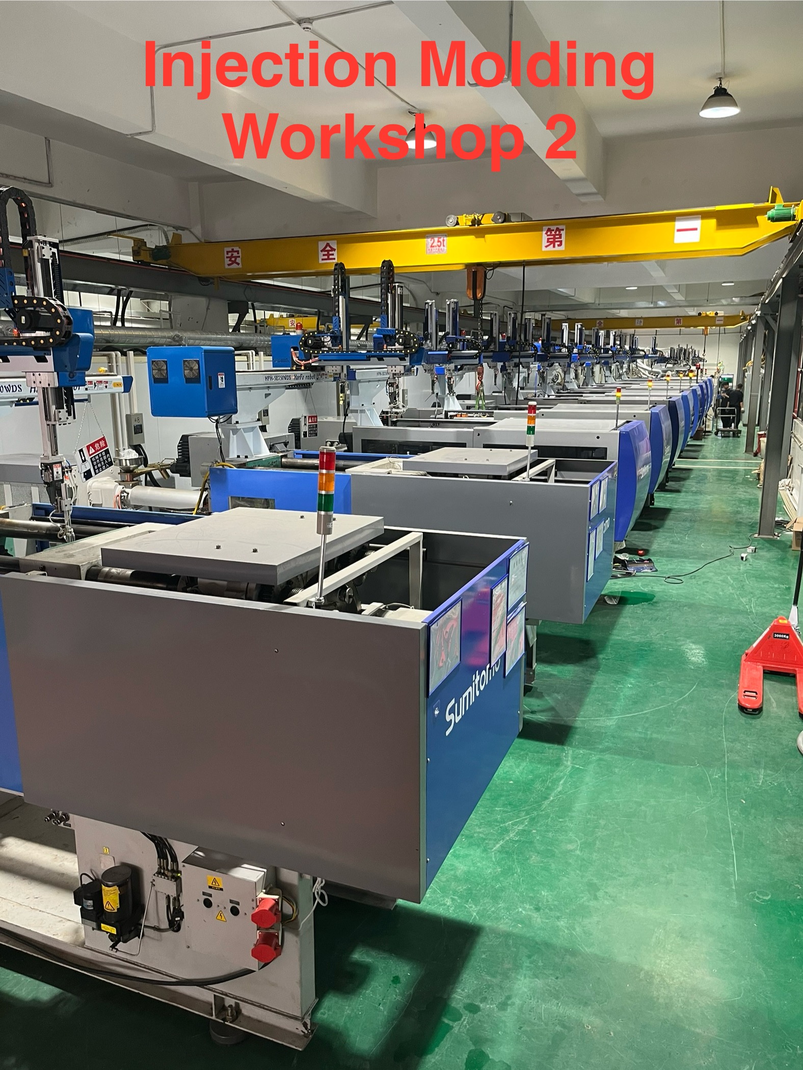 In November 2025, we upgraded the entire injection molding workshop second time and add 11  injection molding  machines. The original setup had one inspector per machine, with over 40 injection molding machines and operators sharing the same space. The company rotated all machines 180 degrees and enclosed the area between two rows of machines to create dedicated inspection and packaging zones, achieving human-machine separation and improving the working environment.